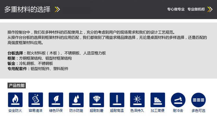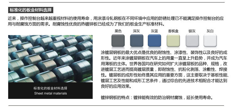 控制臺主體架構(gòu)以及背板采用精選鋼板,經(jīng)氧化處理后再噴塑,另配有質(zhì)輕而剛度高的鋁型材,兼顧耐用,表面光潔都好,實(shí)用強(qiáng)。
