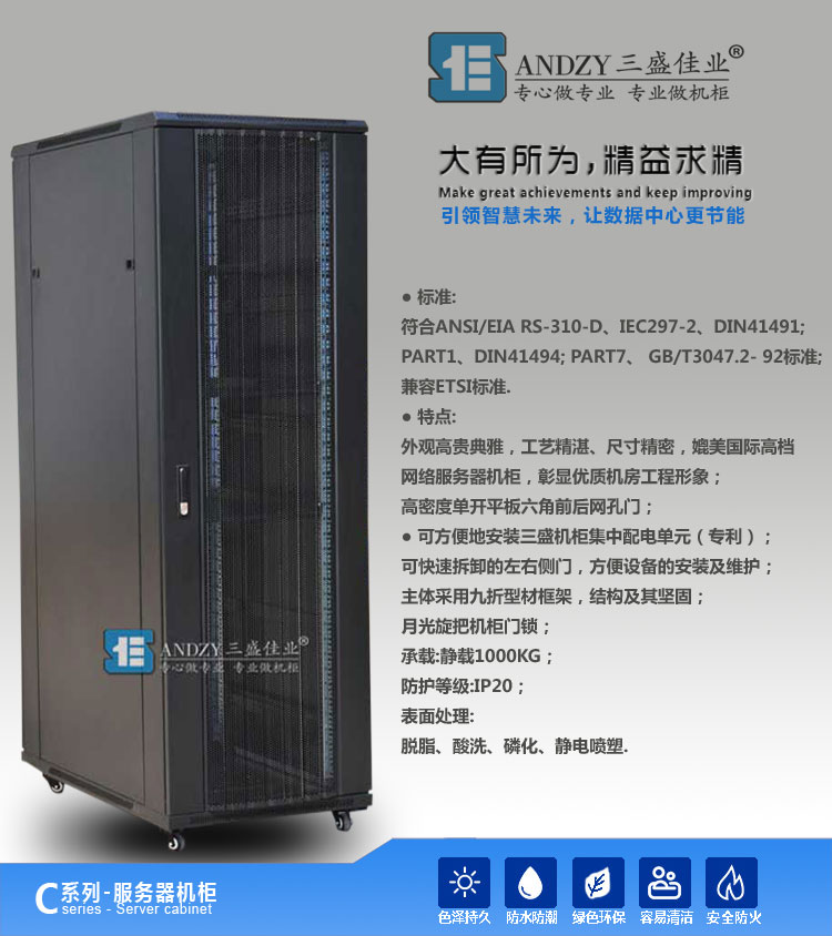 符合ANSI/EIA RS-310-D、IEC297-2、DIN41491;PART1、DIN41494;PART7、GB/T3047.2-92標準;兼容ETSI標準;